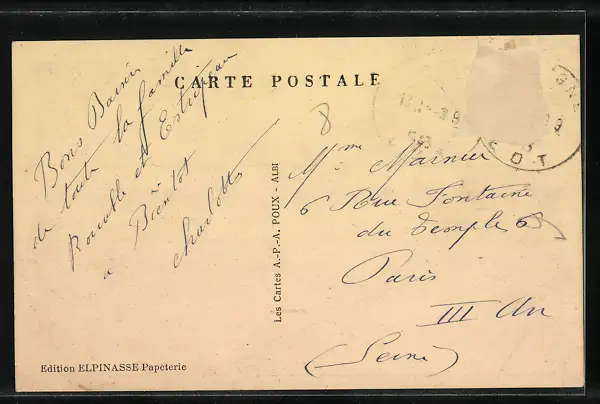 alte Ansichtskarte, gelaufen, Briefmarke entfernt, rückseitig Oberflächenschaden, Eckknick li. oben, Bugspuren li. oben, guter Zustand