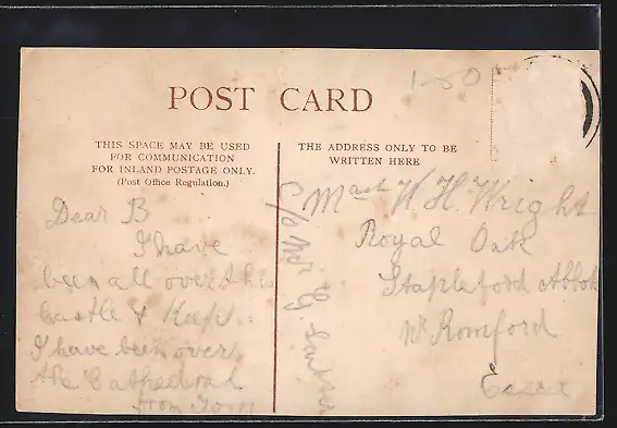 alte Ansichtskarte, gelaufen, Briefmarke entfernt, rückseitig Oberflächenschaden, guter Zustand