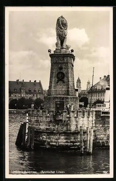 AK Lindau /Bodensee, Bayrischer Löwe am Hafeneingang