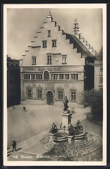 AK Lindau / Bodensee, Brunnen vor dem Rathaus