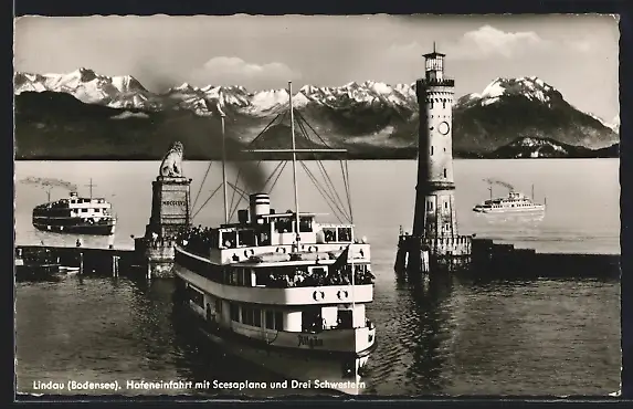 AK Lindau /Bodensee, Dampfer Allgäu an der Hafeneinfahrt