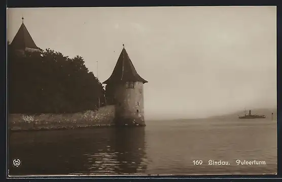 AK Lindau / Bodensee, Dampfer am Pulverturm
