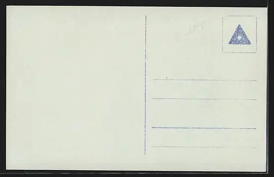 Personenbezogene Daten auf der Rückseite der Karte wurden durch blauen Textmarker unkenntlich gemacht. Die blauen Stellen sind auf die Vorderseite durchgeweicht und wirken sich negativ auf das Postkartenfoto aus