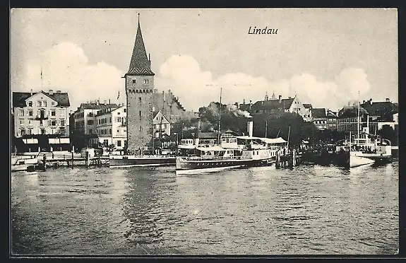 AK Lindau / Bodensee, Dampfer mit Besuchern