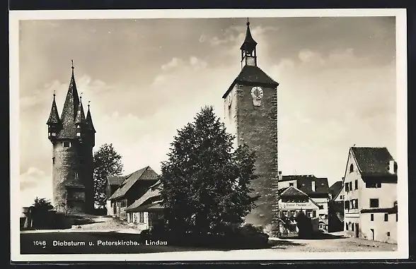 AK Lindau / Bodensee, Diebsturm und Peterskirche