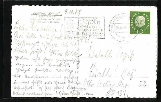 AK Lindau / Bodensee, Gasthaus-Pension Goldenes Lamm