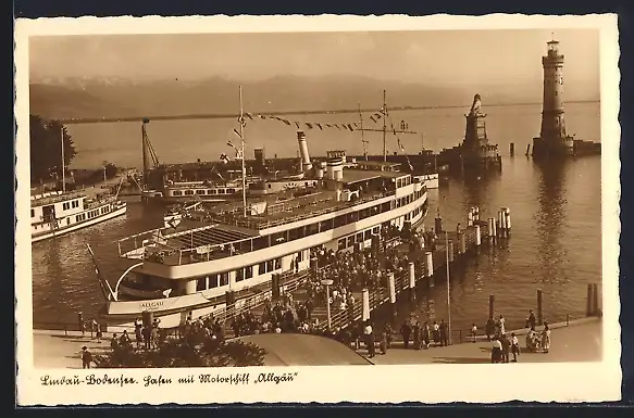 AK Lindau /Bodensee, Hafen mit Motorschiff Allgäu & Passagieren