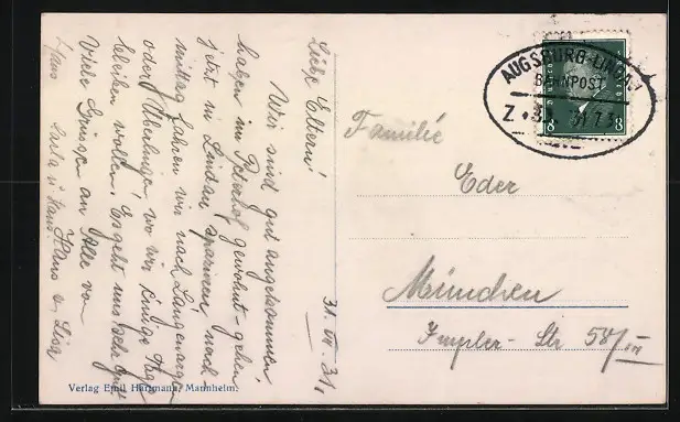 alte Ansichtskarte, gelaufen 1931, guter Zustand