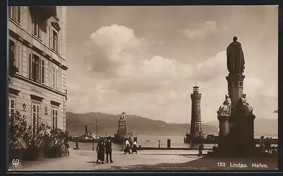AK Lindau / Bodensee, Partie am Hafen, Spaziergänger