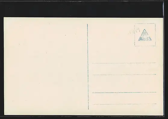 Personenbezogene Daten auf der Rückseite der Karte wurden durch blauen Textmarker unkenntlich gemacht. Die blauen Stellen sind auf die Vorderseite durchgeweicht und wirken sich negativ auf das Postkartenfoto aus