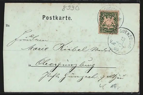 alte Ansichtskarte, gelaufen 1899, rechte Kante beschnitten, guter Zustand