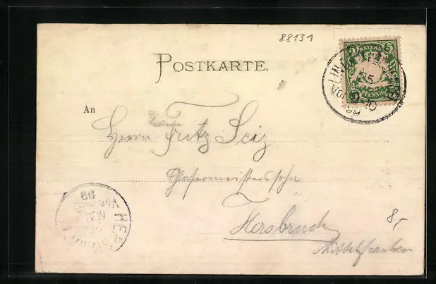 alte Ansichtskarte, gelaufen 1899, Eckknick re. unten, Stempelspur, guter Zustand