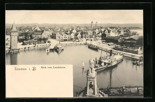 AK Lindau i. B., Blick vom Leuchtturm auf den Hafen
