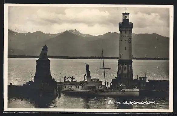 AK Lindau i. B., Hafeneinfahrt mit Bergblick