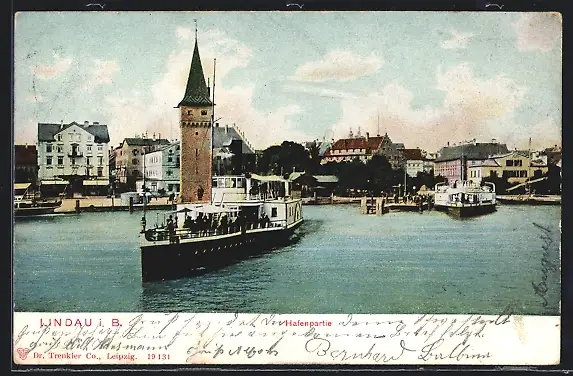 AK Lindau i. B., Hafenpartie mit Ausflugsschiff