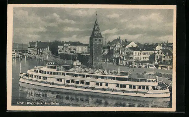 AK Lindau i. B., Hafenpartie mit Dampfer