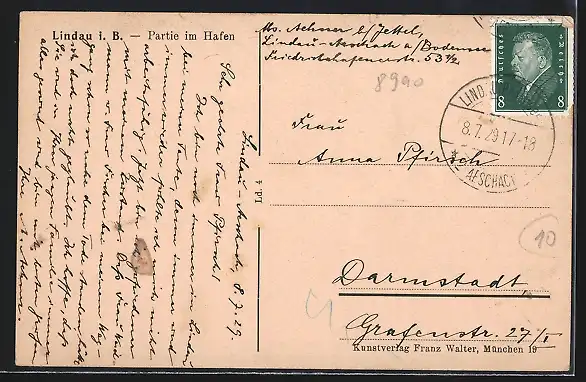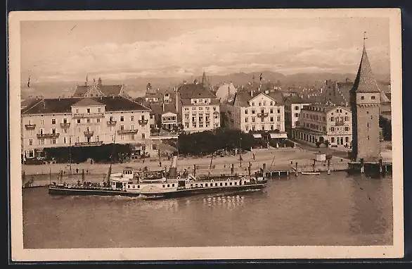 AK Lindau i. B., Hafenpartie mit Dampfer