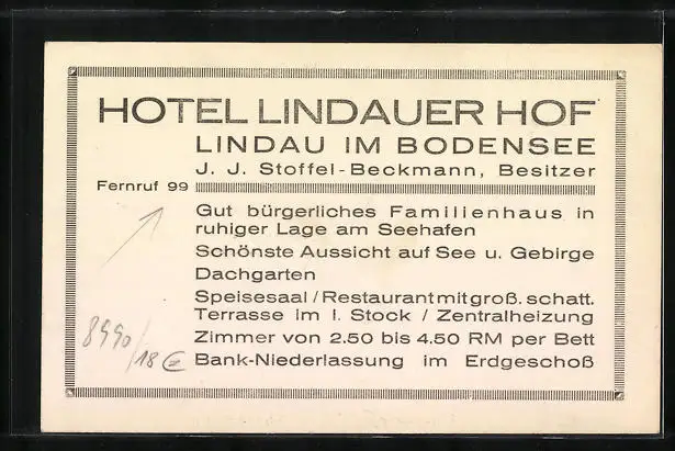 AK Lindau i. B., Hotel Lindauer Hof mit Dachgarten, Hafenpartie