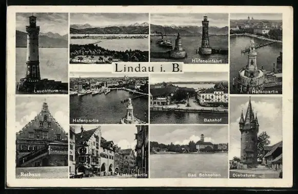 AK Lindau i. B., Leuchtturm, Bahnhof, Hafenpartie
