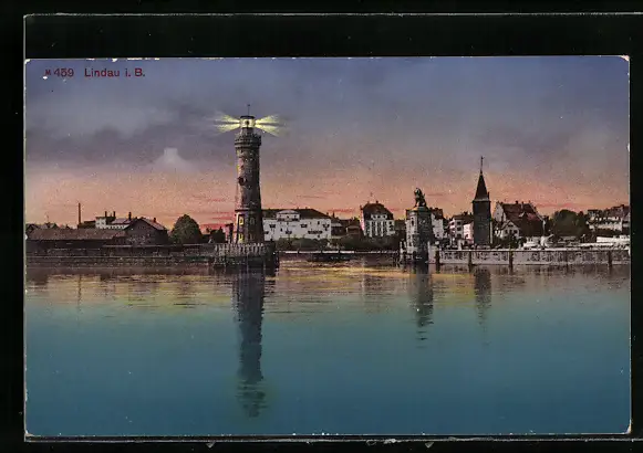 AK Lindau i. B., Leuchtturm und Hafeneinfahrt