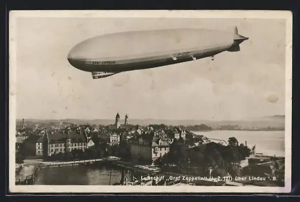 AK Lindau i. B., Luftschiff LZ127 Graf Zeppelin über der Hafeneinfahrt