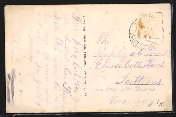 alte Ansichtskarte, gelaufen, Briefmarke entfernt, guter Zustand