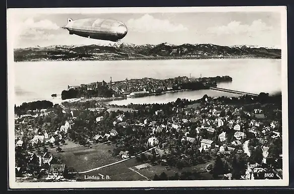 AK Lindau i. B., Panorama mit Zeppelin