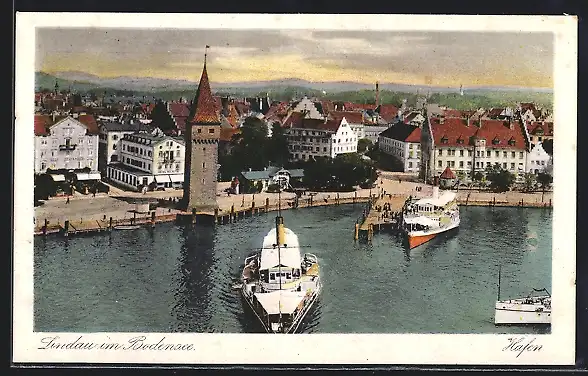 AK Lindau im Bodensee, Hafen mit Dampfern