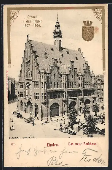 AK Linden / Hannover, Strasseneck am Neues Rathaus, Erbaut 1897-1899, Wappen