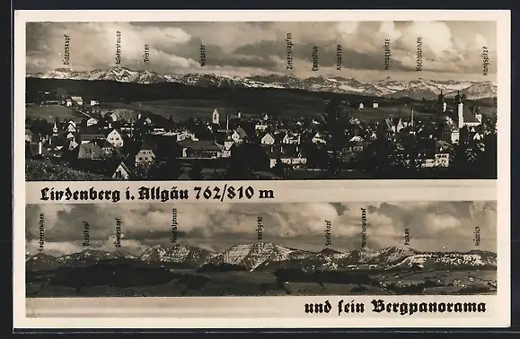 AK Lindenberg / Allgäu, Totalansicht mit Bergpanorama