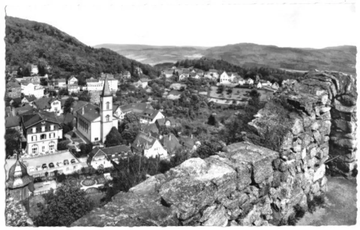 Ansichtskarte Lindenfels Odw. Blick von der Burg Erhaltung II, Beförderungsspuren, rückseitig Tinte verwischt postalisch gelaufen, gestempelt: Lindenfels, 1.8.68 Verlag: K. Peters, Nussloch
