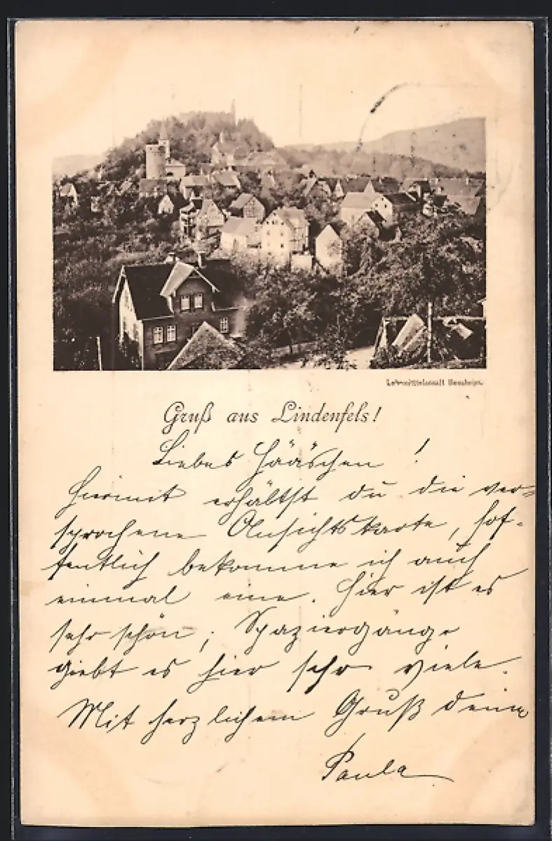 AK Lindenfels, Stadtansicht mit Burg