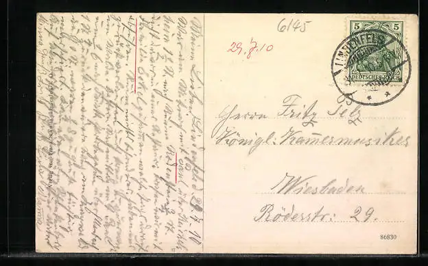 alte Ansichtskarte, gelaufen 1910, Stempelspur, guter Zustand