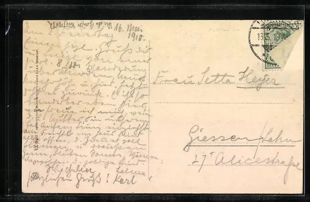 alte Ansichtskarte, gelaufen 1910, Briefmarke tw. entfernt, guter Zustand
