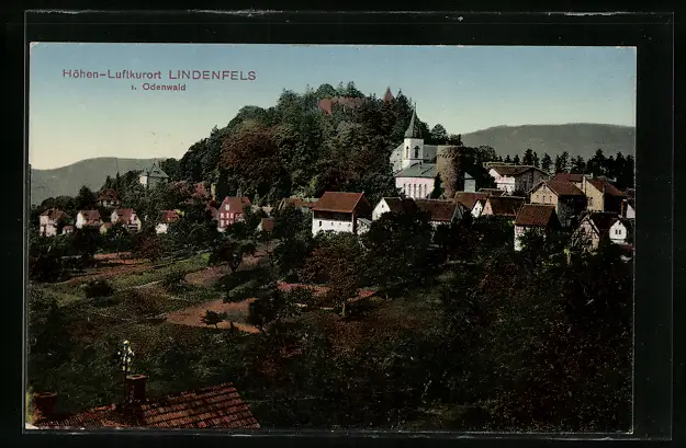AK Lindenfels i. Odenwald, Teilansicht mit Kirche