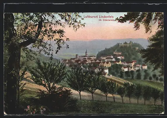 AK Lindenfels im Odenwald, Ortsansicht hinter Bäumen
