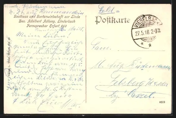 alte Ansichtskarte, gelaufen 1918, guter Zustand