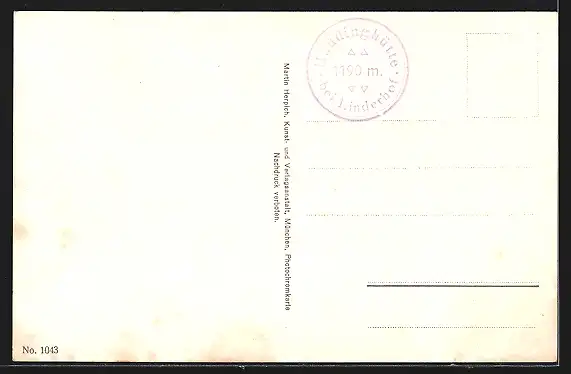 Personenbezogene Daten auf der Rückseite der Karte wurden durch blauen Textmarker unkenntlich gemacht. Die blauen Stellen sind auf die Vorderseite durchgeweicht und wirken sich negativ auf das Postkartenfoto aus
