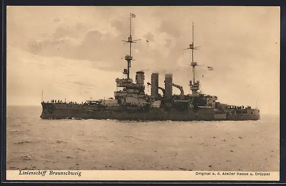 AK Linienschiff Braunschweig auf dem Meere