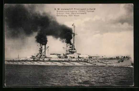 AK Linienschiff SM Prinzregent Luitold Volldampf gebend
