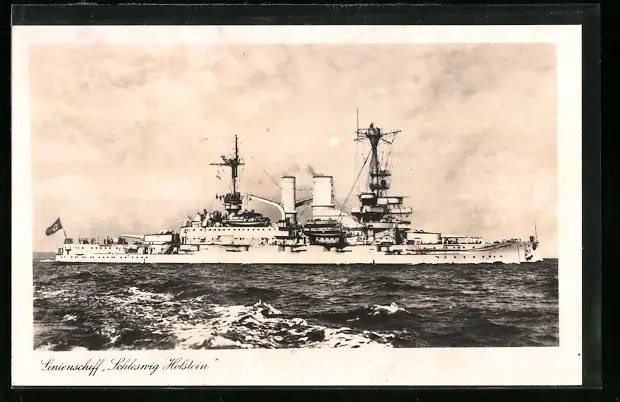 AK Linienschiff Schleswig Holstein der Kriegsmarine in Fahrt,