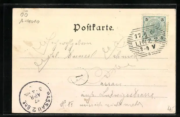 alte Ansichtskarte, gelaufen 1900, guter Zustand