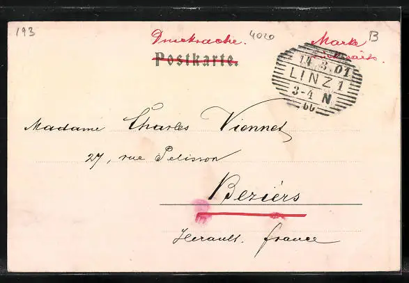 gelaufen 1901, Eckknicke oben, guter Zustand