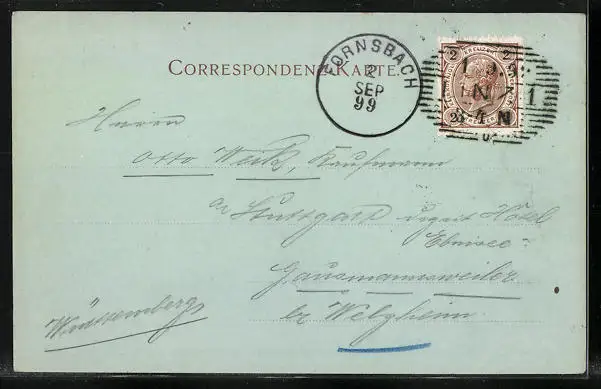 alte Ansichtskarte, gelaufen 1899, Eckknicke oben, Stempelspur, guter Zustand