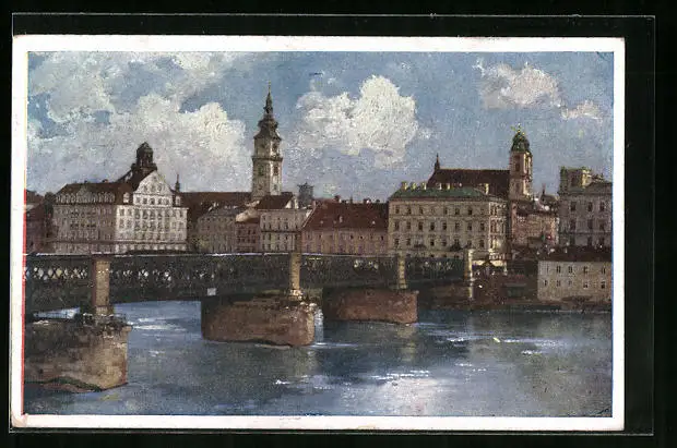 AK Linz /Donau, Brücke in die Stadt