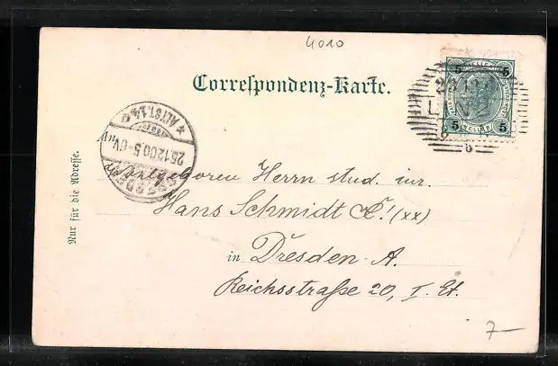 alte Ansichtskarte, gelaufen 1900, Stempelspur, Eckknick li. oben, guter Zustand