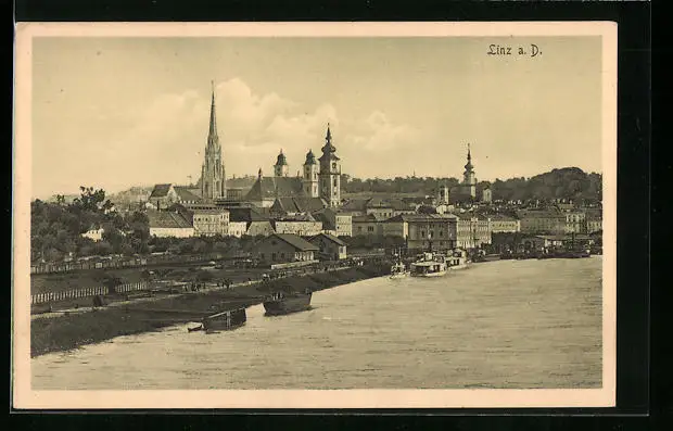 AK Linz /Donau, Ortsansicht von der Donau aus