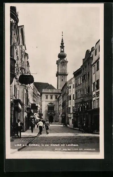 AK Linz /Donau, Strassenpartie in der Altstadt mit Landhaus