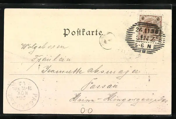 alte Ansichtskarte, gelaufen 1898, Eckknick li. oben, Bugspur li. oben, Stempelspur, guter Zustand
