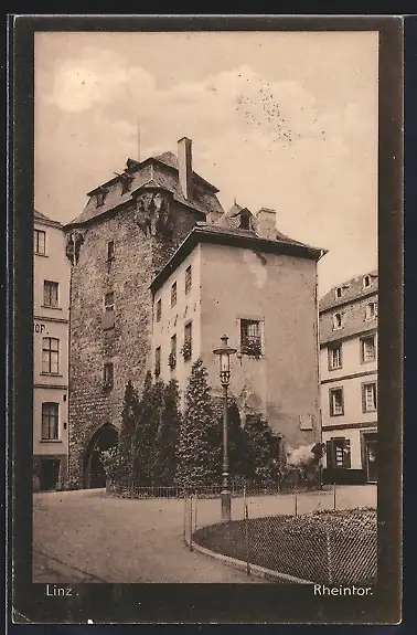 AK Linz / Rhein, Rheintor mit Strassenpartie